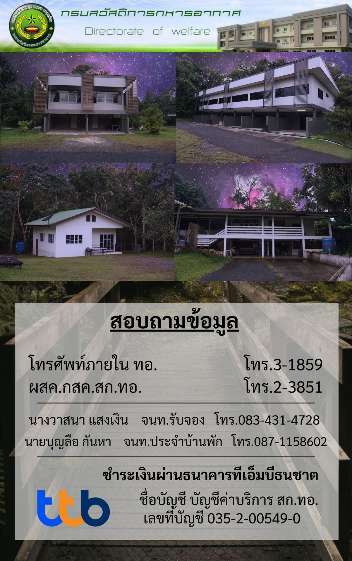 083-431-4728 จนท.รับจองบ้านพัก