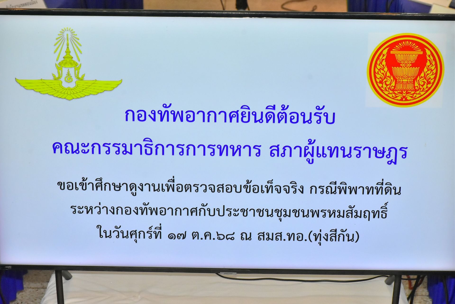 กองทัพอากาศอำนวยความสะดวกให้คณะกรรมาธิการการทหาร เข้าศึกษาดูงานเพื่อตรวจสอบข้อเท็จจริงกรณีพิพาทที่ดินชุมชนพรหมสัมฤทธิ์