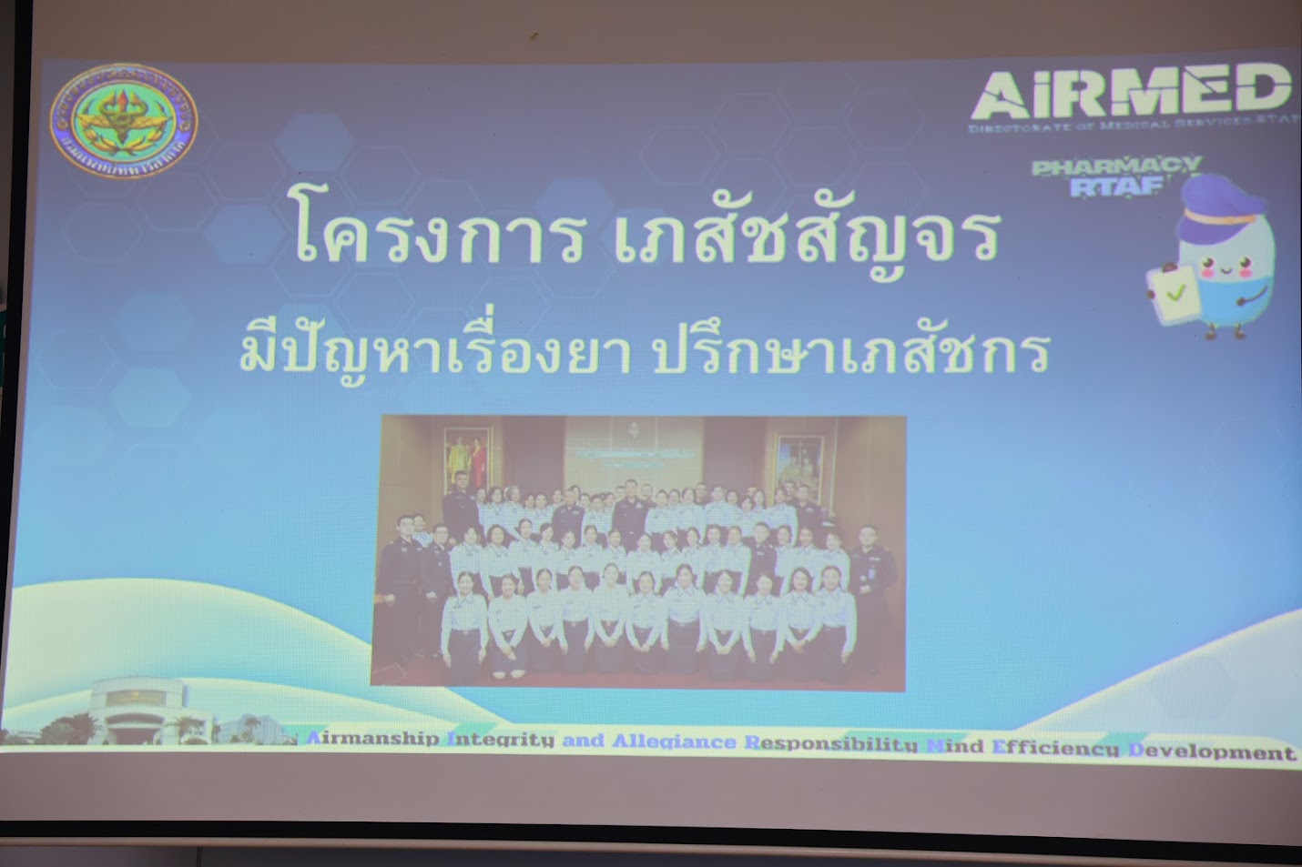วันที่ 12 ธันวาคม 2568 กรมสวัสดิการทหารอากาศ ได้จัดกิจกรรม โครงการเภสัชสัญจร ประจำปี 2569 และ 2570 ณ อาคารสวัสดิการ กรมสวัสดิการทหารอากาศ โดยได้รับเกียรติจากคณะวิทยากรจากกรมแพทย์ทหารอากาศ มาให้ความรู้เกี่ยวกับหลักการดูแลยา วิธีการเก็บรักษายาอย่างถูกต้อง รวมถึงแนวทางการบริหารจัดการตู้ยาประจำหน่วยงานให้เป็นไปตามมาตรฐานด้านสาธารณสุขการจัดกิจกรรมครั้งนี้เป็นไปตามอนุมัติของเจ้ากรมสวัสดิการทหารอากาศ โดยมอบหมายให้ กองบริการ กรมสวัสดิการทหารอากาศ เป็นผู้รับผิดชอบดำเนินโครงการฯ พร้อมเชิญข้าราชการและพนักงานลูกจ้างในสังกัด รวมถึงผู้รับผิดชอบด้านการดูแลและเก็บรักษายาของแต่ละหน่วย เข้าร่วมรับฟังการบรรยายและแลกเปลี่ยนประสบการณ์ เพื่อให้สามารถนำความรู้ที่ได้รับไปประยุกต์ใช้ในการดูแลกำลังพลของหน่วยงานได้อย่างถูกต้องตามหลักวิชาการและมีประสิทธิภาพยิ่งขึ้น