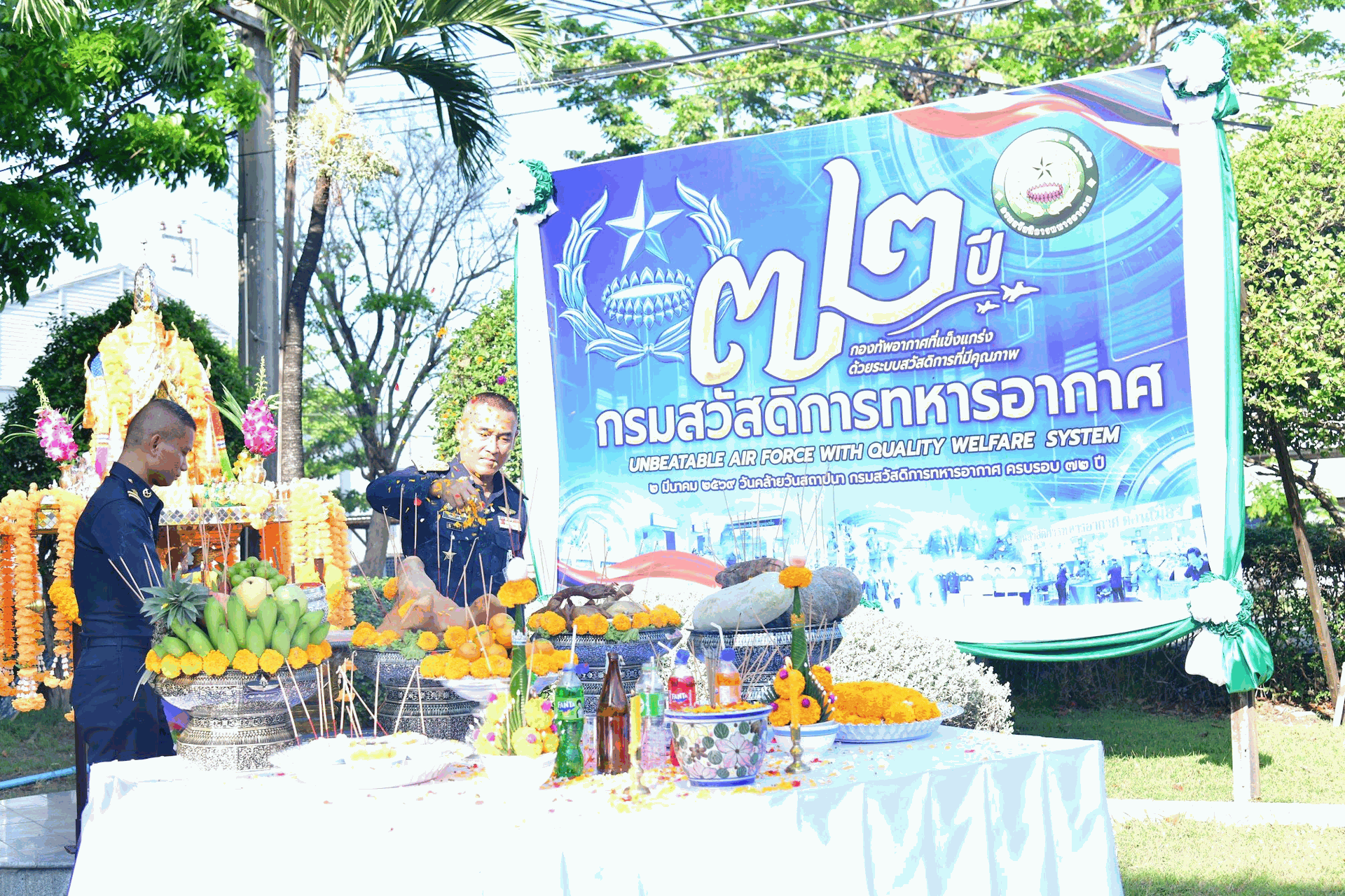 วันจันทร์ที่ 2 มีนาคม 2569 กรมสวัสดิการทหารอากาศ จัดพิธีครบรอบ 72 ปี เนื่องในวันคล้ายวันสถาปนากรมสวัสดิการทหารอากาศ ณ อาคารกองบังคับการ กรมสวัสดิการทหารอากาศ โดยมี พลอากาศตรี พรเดชน์ คงปั้น เจ้ากรมสวัสดิการทหารอากาศ เป็นประธานในพิธี พร้อมด้วย นาวาอากาศเอก ปรีชา มลิวัลย์ รองเจ้ากรมสวัสดิการทหารอากาศ, นาวาอากาศเอก ชนาวีร์ กลิ่นมาลี เสนาธิการกรมสวัสดิการทหารอากาศ ตลอดจนนายทหารผู้ใหญ่และกำลังพล เข้าร่วมพิธีอย่างพร้อมเพรียงในโอกาสอันเป็นมงคลนี้ กรมสวัสดิการทหารอากาศได้รับเกียรติจากอดีตเจ้ากรมสวัสดิการทหารอากาศในแต่ละสมัย รวมถึงผู้แทนหน่วยงานสวัสดิการจากต่างเหล่าทัพ ได้แก่ พลเรือตรี วิชชุ บำรุง เจ้ากรมสวัสดิการทหารเรือ พร้อมคณะ และพันเอก สมเกียรติ ถนอมคุ้ม รองเจ้ากรมสวัสดิการทหารบก (2) ผู้แทนเจ้ากรมสวัสดิการทหารบก พร้อมคณะ เข้าร่วมพิธีสงฆ์เพื่อความเป็นสิริมงคล และร่วมรับประทานอาหารกลางวันลำดับพิธีการสำคัญ• พิธีสักการะพระไชยมงคล (พ่อปู่พระราเมศวร) บริเวณด้านหน้าอาคารกองบังคับการ (หลังเดิม)• พิธีบวงสรวงพระภูมิเจ้าที่ พร้อมเครื่องสังเวย โปรยข้าวตอกดอกไม้ และลั่นฆ้องชัย 3 ครั้ง ณ บริเวณด้านหน้าอาคารกองบังคับการ (หลังใหม่)• พิธีเจริญพระพุทธมนต์ โดยพระสงฆ์ 9 รูป จาก วัดพระศรีมหาธาตุวรมหาวิหาร เพื่อความเป็นสิริมงคลแก่หน่วยงานและกำลังพล• พิธีมอบรางวัล “บุคคลดีเด่นด้านสวัสดิการ” แก่ข้าราชการ ลูกจ้าง และพนักงานราชการ เพื่อเชิดชูเกียรติและสร้างขวัญกำลังใจการจัดงานในครั้งนี้จัดขึ้นเพื่อรำลึกถึงความสำคัญของกรมสวัสดิการทหารอากาศ ในภารกิจดูแลสวัสดิการของกำลังพล กองทัพอากาศ และครอบครัว ตลอดระยะเวลา 72 ปีกรมสวัสดิการทหารอากาศมีจุดเริ่มต้นจากแนวคิดด้านการสวัสดิการตั้งแต่สมัยที่แผนกการบินยกฐานะขึ้นเป็นกองบินทหารบก เมื่อวันที่ 27 มีนาคม 2475 โดยมี นายพลโท พระยาเฉลิมอากาศ ดำรงตำแหน่งเจ้ากรมอากาศยาน ระหว่าง พ.ศ. 2457–2474 และได้ริเริ่มแนวคิดจัดตั้งระบบสวัสดิการเพื่อดูแลความเป็นอยู่ของข้าราชการและครอบครัว ทั้งในยามสงครามและยามปกติระยะแรก (พ.ศ. 2483) การสวัสดิการดำเนินการในรูปแบบ “สโมสรทหารอากาศ” ณ ดอนเมือง เพื่อส่งเสริมกีฬา นันทนาการ และจำหน่ายสินค้าในราคาย่อมเยา ภายหลังสงครามโลกครั้งที่ 2 กองทัพอากาศมีการขยายตัวอย่างรวดเร็ว จึงได้จัดตั้ง “แผนกสวัสดิการ” ภายใต้กรมพลาธิการทหารอากาศ ในปี พ.ศ. 2496ต่อมาในปี พ.ศ. 2497 กิจการสวัสดิการขยายตัวเพิ่มขึ้น ทางราชการจึงยกฐานะแผนกสวัสดิการเป็น “กรมสวัสดิการทหารอากาศ” แ
