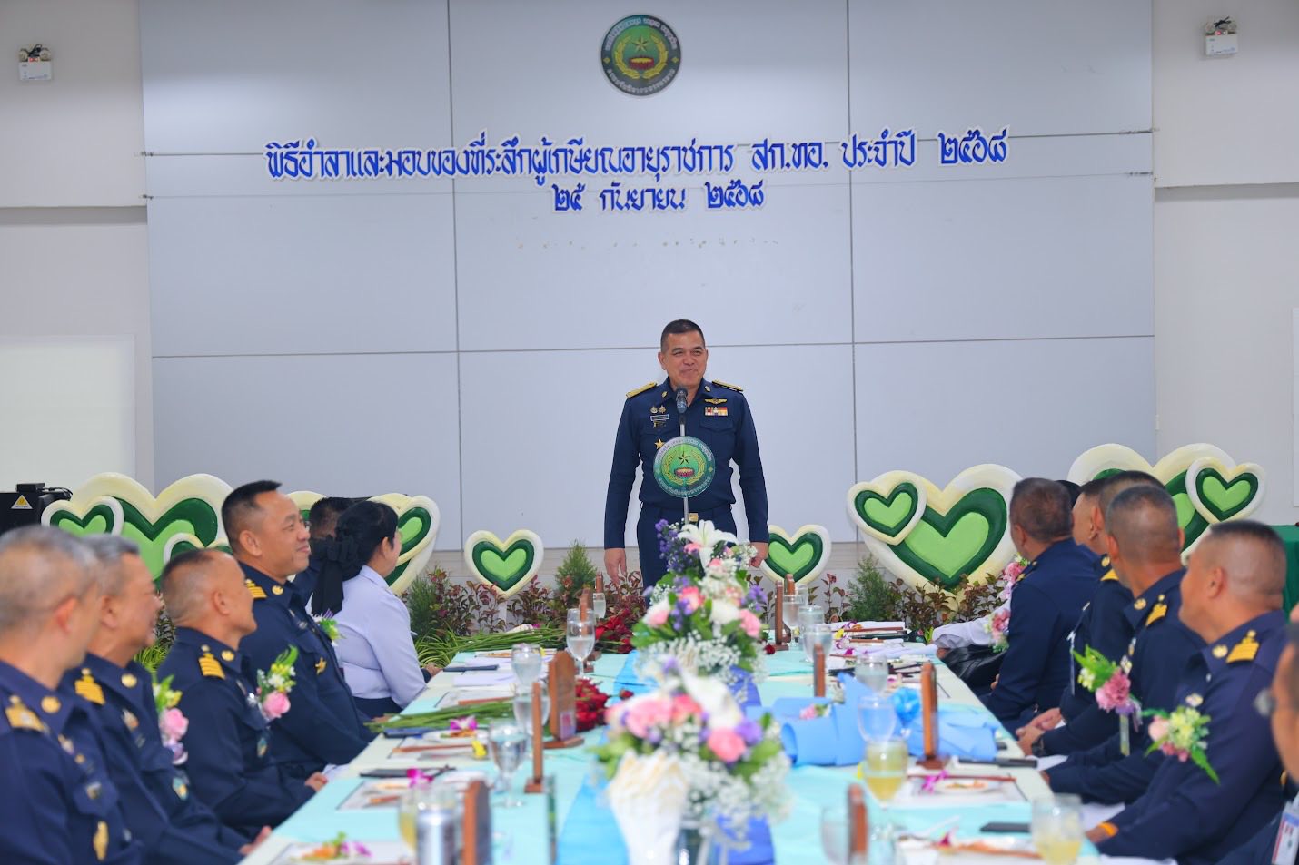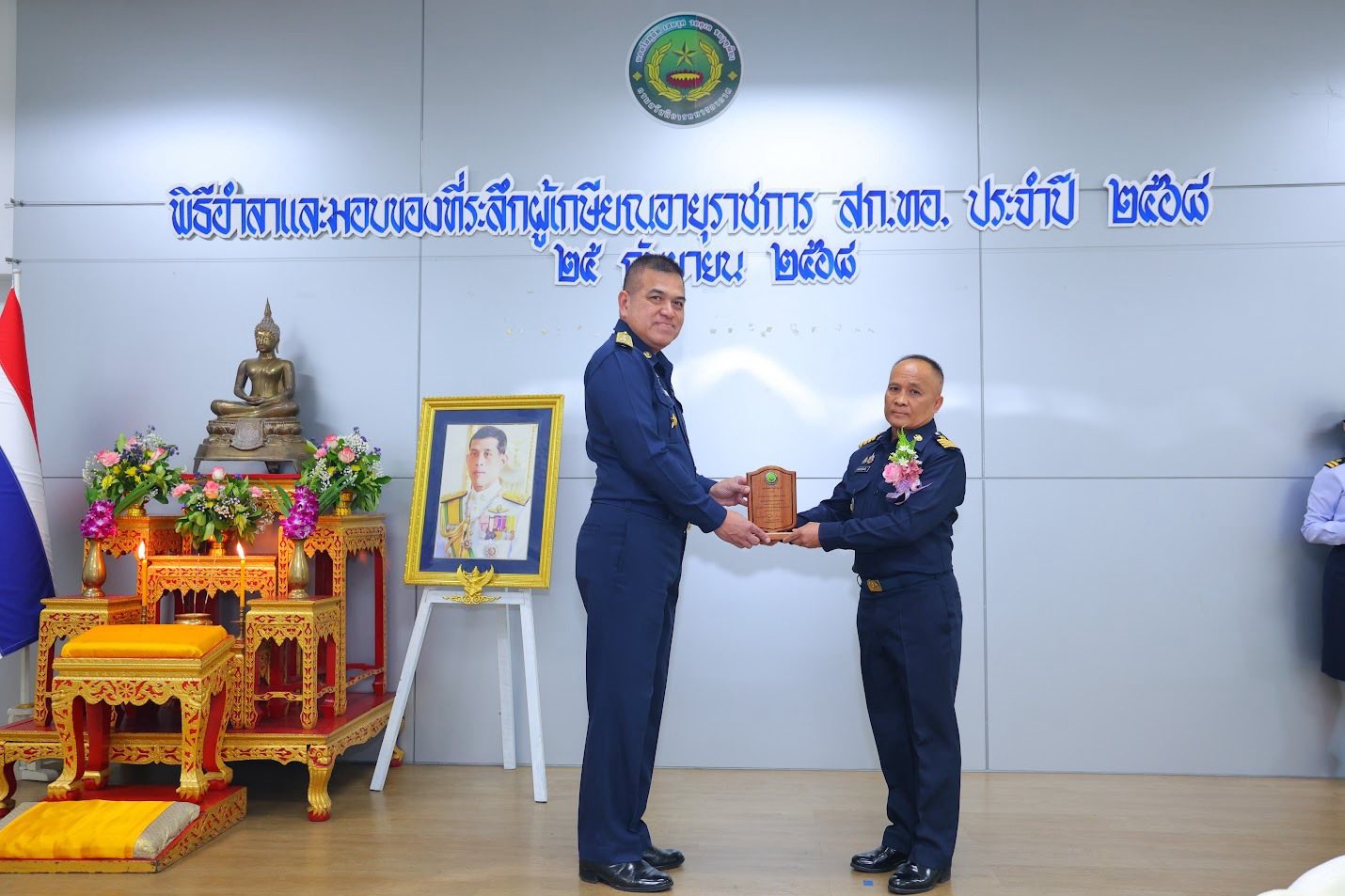 พลอากาศตรี วัลลภ ประสงค์กิจ เจ้ากรมสวัสดิการทหารอากาศ เป็นประธานในพิธีอำลาและมอบของที่ระลึกแด่ผู้เกษียณอายุราชการ กรมสวัสดิการทหารอากาศ ประจำปี 2568 เพื่อเป็นเกียรติที่ทุกท่านได้อุทิศตนปฏิบัติหน้าที่ราชการด้วยความวิริยะ อุตสาหะ และซื่อสัตย์สุจริต โดยมี นาวาอากาศเอก ปรีชา มลิวัลย์ รองเจ้ากรมสวัสดิการทหารอากาศ, นาวาอากาศเอก ชนาวีร์ กลิ่นมาลี เสนาธิการกรมสวัสดิการทหารอากาศ หัวหน้าหน่วยขึ้นตรงกรมสวัสดิการทหารอากาศ พร้อมด้วยข้าราชการกรมสวัสดิการทหารอากาศ เข้าร่วมในพิธี เมื่อวันที่ 25 กันยายน 2568 ณ อาคารสวัสดิการ กรมสวัสดิการทหารอากาศสำหรับผู้เกษียณอายุราชการ ประจำปี 2568 นี้ มีจำนวน 19 คน โดยได้รับมอบของที่ระลึกอันทรงคุณค่า ซึ่งจัดทำขึ้นจากไม้เก่าที่เคยใช้มุงหลังคา “ตึกเหลือง” อาคารประวัติศาสตร์ที่มีความผูกพันกับกองทัพอากาศมาอย่างยาวนาน “ตึกเหลือง” แห่งนี้เคยเป็นที่ตั้งของกองกำลังทหารญี่ปุ่นในการต่อต้านกองกำลังพันธมิตรในช่วงสงครามมหาเอเชียบูรพา ระหว่างปี พ.ศ. 2484–2488 ต่อมาได้ถูกปรับใช้เป็นที่ตั้งของโรงเรียนนายเรืออากาศ และในปี พ.ศ. 2504 กรมสวัสดิการทหารอากาศก็ได้ย้ายเข้ามาใช้ “ตึกเหลือง” แห่งนี้เป็นที่ทำการโดยเป็นเจตนารมณ์ของเจ้ากรมสวัสดิการทหารอากาศ ที่ตั้งใจนำวัสดุอันทรงคุณค่านี้มาจัดทำเป็นของที่ระลึก เพื่อสื่อถึงคุณค่าทางประวัติศาสตร์ และเป็นสัญลักษณ์แห่งความทรงจำ ความภาคภูมิใจ และความผูกพันที่เชื่อมโยงระหว่าง “อดีต” และ “ปัจจุบัน” ทั้งยังปรารถนาให้เมื่อผู้เกษียณทุกท่านได้เห็นของที่ระลึกชิ้นนี้ จะสามารถรำลึกถึงวันเวลาแห่งการทำงาน นึกถึงบรรยากาศของสถานที่ที่เคยร่วมแรงร่วมใจกันมา และตระหนักว่าทุกความทุ่มเทที่ได้ฝากไว้ยังคงเป็นรากฐานสำคัญของกรมสวัสดิการทหารอากาศตราบจนถึงวันนี้