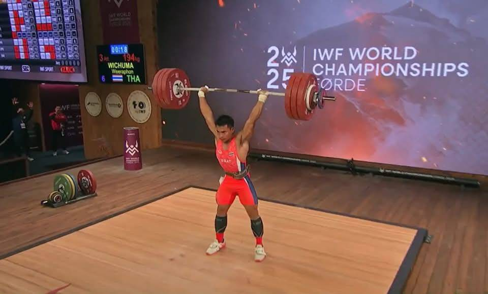 การแข่งขันยกน้ำหนักชิงชนะเลิศแห่งโลก ประจำปี 2025 ณ เมืองฟอร์ด ประเทศนอร์เวย์ เมื่อวันที่ 5 ตุลาคม 2568 ที่ผ่านมา สร้างความภาคภูมิใจให้กับชาวไทยอีกครั้ง เมื่อ “เวฟ” จ่าอากาศตรี วีรพล วิชุมา นักยกน้ำหนักทีมชาติไทย สังกัด กองการกีฬา กรมสวัสดิการทหารอากาศ เจ้าของเหรียญเงินโอลิมปิกเกมส์ “ปารีส 2024” โชว์ฟอร์มสุดแข็งแกร่งในรุ่น 71 กิโลกรัมชาย คว้า 2 เหรียญทอง พร้อมทำลาย 2 สถิติโลก ได้อย่างยิ่งใหญ่ผลการแข่งขันของ จ่าอากาศตรี วีรพล วิชุมา