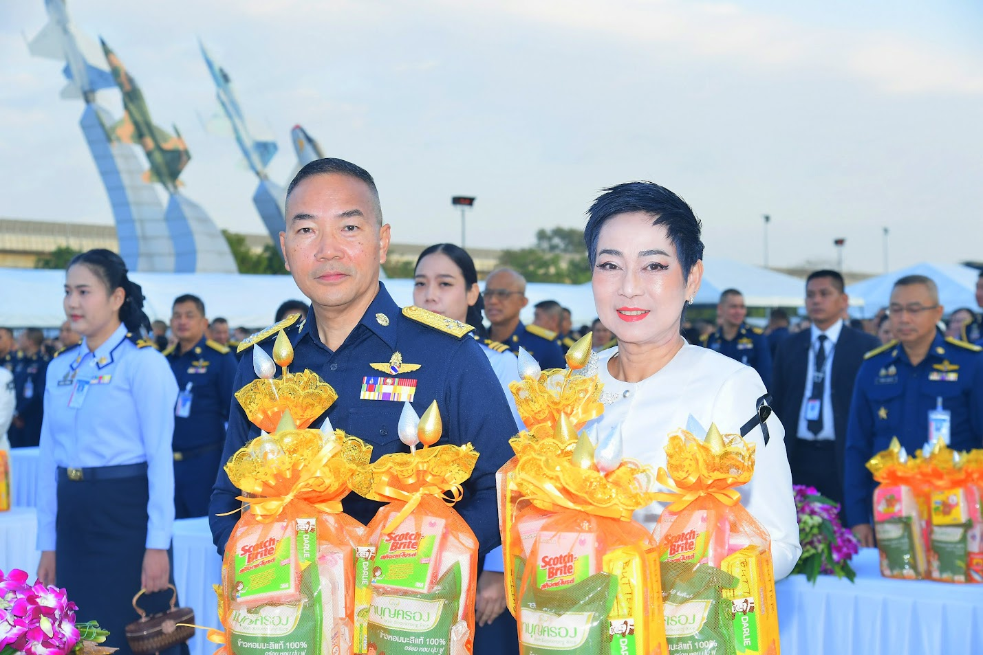วันพุธที่ 7 มกราคม 2569 พลอากาศเอก เสกสรร คันธา ผู้บัญชาการทหารอากาศ พร้อมด้วยคุณอภิษฎา คันธา นายกสมาคมคู่สมรสทหารอากาศ เป็นประธานในพิธีทำบุญตักบาตรเนื่องในวันขึ้นปีใหม่ ประจำปี 2569 ณ อุทยานการบินกองทัพอากาศ เพื่อเสริมสร้างความเป็นสิริมงคลแก่กำลังพลและครอบครัว ต้อนรับศักราชใหม่ในโอกาสนี้ พลอากาศตรี พรเดชน์ คงปั้น เจ้ากรมสวัสดิการทหารอากาศ พร้อมด้วยนาวาอากาศเอก ปรีชา มลิวัลย์ รองเจ้ากรมสวัสดิการทหารอากาศ ได้นำข้าราชการ ลูกจ้าง และพนักงานราชการ กรมสวัสดิการทหารอากาศ เข้าร่วมพิธีทำบุญตักบาตรเนื่องในวันขึ้นปีใหม่ ประจำปี 2569 ด้วยผู้บัญชาการทหารอากาศได้กล่าวแสดงความขอบคุณต่อกำลังพลทุกระดับ พร้อมอวยพรเนื่องในโอกาสวันขึ้นปีใหม่ โดยเน้นย้ำถึงความสามัคคี ความมุ่งมั่น ทุ่มเท และเสียสละของบุคลากรกองทัพอากาศ ซึ่งเป็นปัจจัยสำคัญต่อความสำเร็จของภารกิจ พร้อมยืนยันเจตนารมณ์ในการดูแลด้านสวัสดิการ เพื่อเสริมสร้างคุณภาพชีวิต ขวัญและกำลังใจแก่กำลังพลและครอบครัวอย่างดีที่สุดทั้งนี้ ภายในพิธีได้จัดให้มีการตักบาตรพระสงฆ์ จำนวน 93 รูป และพิธีเจริญพระพุทธมนต์ โดยนิมนต์พระสงฆ์จากวัดชูจิตธรรมาราม วัดดอนเมือง (พระอารามหลวง) วัดพระศรีมหาธาตุวรมหาวิหาร และวัดสายไหม เพื่อความเป็นสิริมงคล เนื่องในโอกาสวันขึ้นปีใหม่ พุทธศักราช 2569 อันเป็นการเริ่มต้นปีใหม่ด้วยความสุข ความสงบ และสืบสานประเพณีอันดีงามของไทย