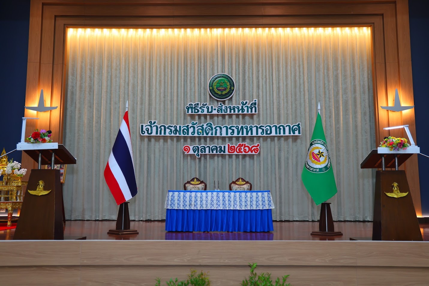 เมื่อวันพุธที่ 1 ตุลาคม 2568 เวลา 11.09 น. กรมสวัสดิการทหารอากาศ จัดพิธีรับ-ส่งหน้าที่ เจ้ากรมสวัสดิการทหารอากาศ ณ หอประชุมกานตรัตน์ กองทัพอากาศ โดยมี พลอากาศโท วัลลภ ประสงค์กิจ ส่งมอบหน้าที่เจ้ากรมสวัสดิการทหารอากาศให้แก่ พลอากาศตรี พรเดชน์ คงปั้น ในโอกาสเข้ารับตำแหน่ง เจ้ากรมสวัสดิการทหารอากาศ (ท่านใหม่)พิธีดังกล่าวจัดขึ้นอย่างสมเกียรติ ท่ามกลางการร่วมเป็นสักขีพยานของข้าราชการ ลูกจ้าง และพนักงานราชการในสังกัดกรมสวัสดิการทหารอากาศ โดยบรรยากาศเป็นไปด้วยความอบอุ่นและเป็นทางการ สะท้อนถึงความต่อเนื่องในการปฏิบัติภารกิจด้านสวัสดิการ เพื่อเสริมสร้างขวัญและกำลังใจแก่กำลังพลของกองทัพอากาศ
