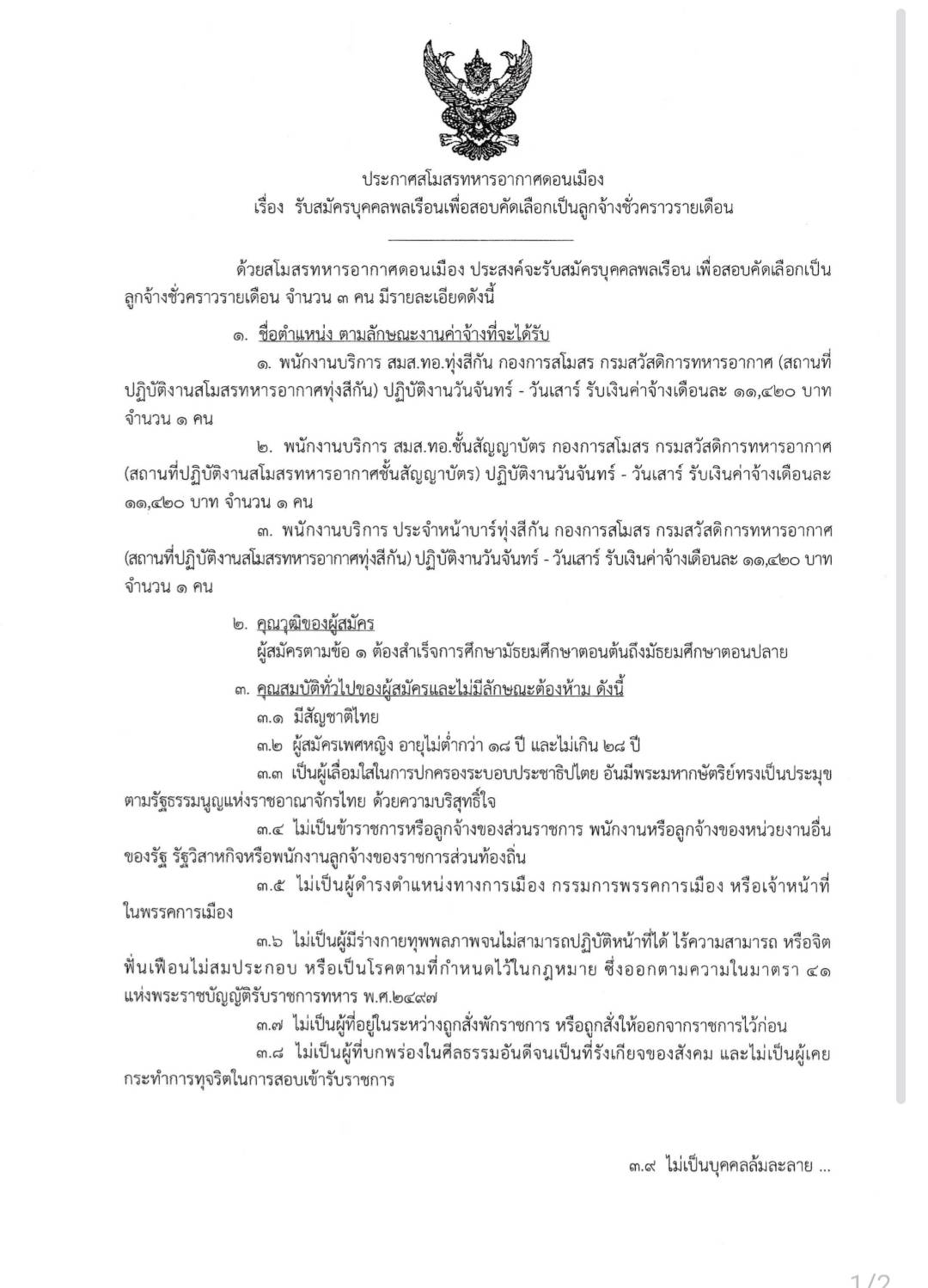 รับสมัครบุคคลพลเรือนเพื่อสอบคัดเลือกเป็นลูกจ้างชั่วคราวรายเดือน